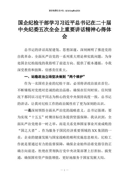 【七哥公文】2026年:国企纪检干部学习习近平总书记在二十届中央纪委五次全会上重要讲话精神心得体会+更多免费公文+VX:QiGeGongWen2024
