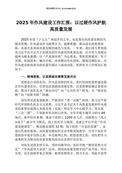 【七哥公文】2026年:2025年作风建设工作汇报:以过硬作风护航高质量发展+更多免费公文+VX:QiGeGongWen2024