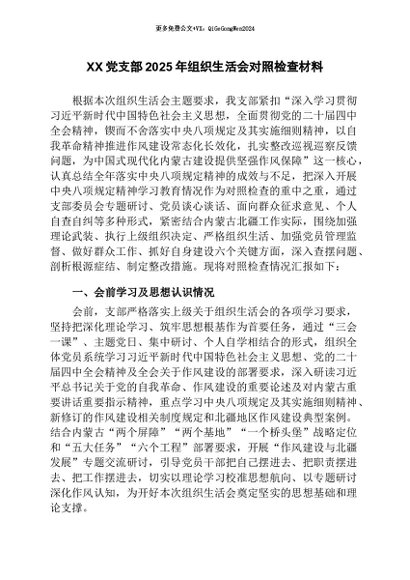 / 【七哥公文】2026年:XX党支部2025年组织生活会对照检查材料+更多免费公文+VX:QiGeGongWen2024
