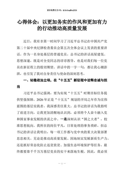 【七哥公文】2026年:心得体会:以更加务实的作风和更加有力的行动推动高质量发展+更多免费公文+VX:QiGeGongWen2024
