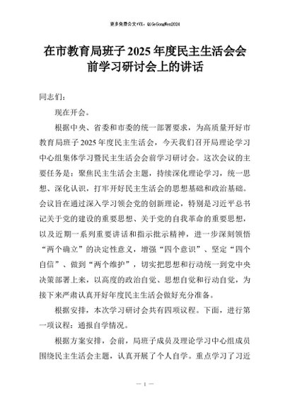 【七哥公文】2026年:在市教育局班子2025年度民主生活会会前学习研讨会上的讲话+更多免费公文+VX:QiGeGongWen2024