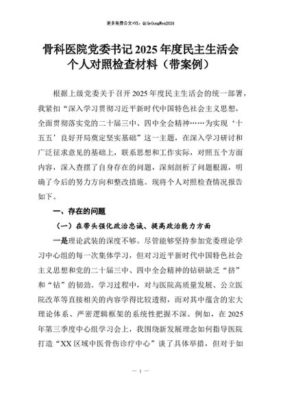 【七哥公文】2026年:骨科医院党委书记2025年度民主生活会个人对照检查材料(带案例)+更多免费公文+VX:QiGeGongWen2024