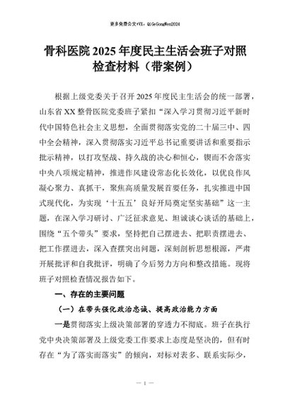 【七哥公文】2026年:骨科医院2025年度民主生活会班子对照检查材料(带案例)+更多免费公文+VX:QiGeGongWen2024