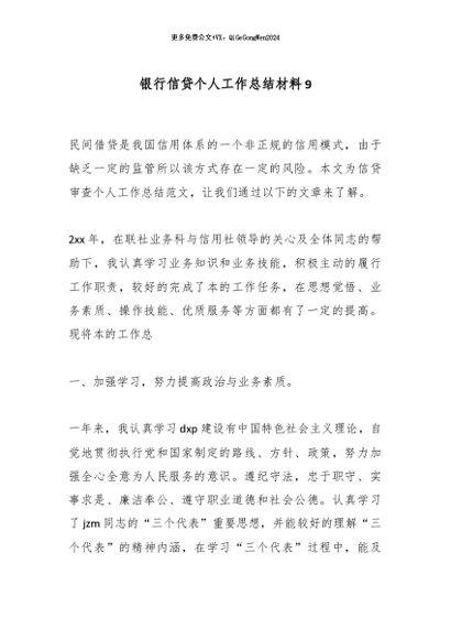 【七哥公文】2026年:银行信贷个人工作总结材料9_副本+更多免费公文+VX:QiGeGongWen2024