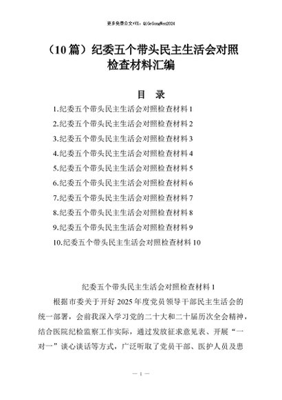 【七哥公文】2026年:(10篇)纪委五个带头民主生活会对照检查材料汇编+更多免费公文+VX:QiGeGongWen2024