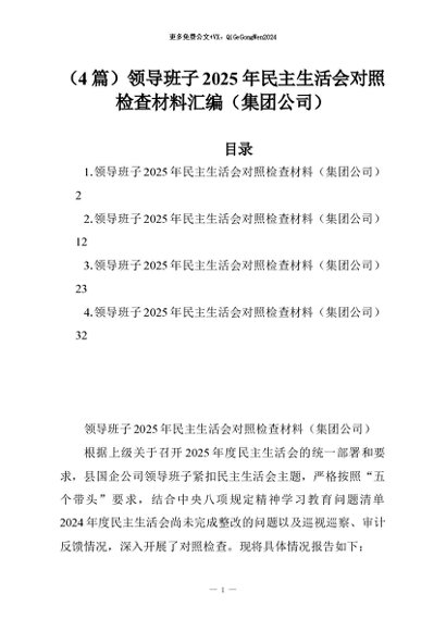 【七哥公文】2026年:(4篇)领导班子2025年民主生活会对照检查材料汇编(集团公司)+更多免费公文+VX:QiGeGongWen2024