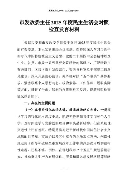 【七哥公文】2026年:市发改委主任2025年度民主生活会对照检查发言材料+更多免费公文+VX:QiGeGongWen2024