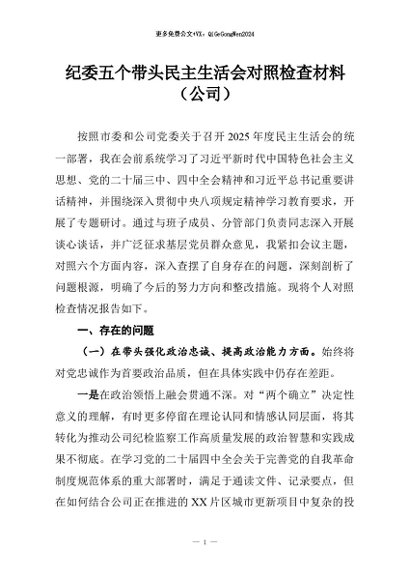 / 【七哥公文】2026年:纪委五个带头民主生活会对照检查材料(公司)+更多免费公文+VX:QiGeGongWen2024