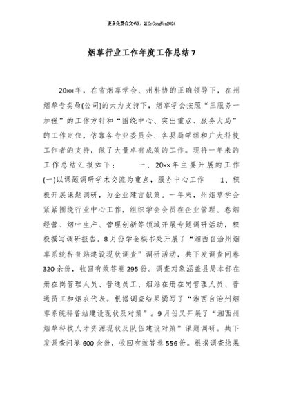 / 【七哥公文】2026年:烟草行业工作年度工作总结7_副本+更多免费公文+VX:QiGeGongWen2024