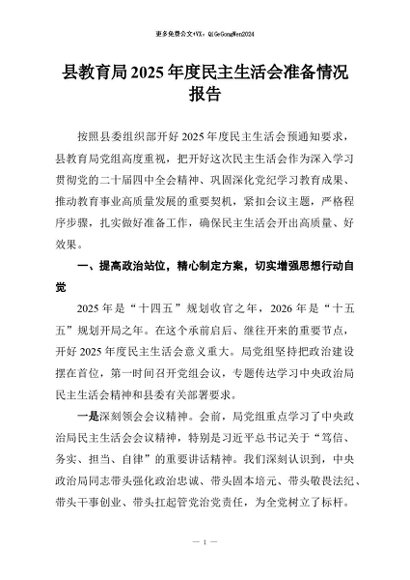 / 【七哥公文】2026年:县教育局2025年度民主生活会准备情况报告+更多免费公文+VX:QiGeGongWen2024