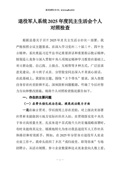 / 【七哥公文】2026年:退役军人系统2025年度民主生活会个人对照检查+更多免费公文+VX:QiGeGongWen2024