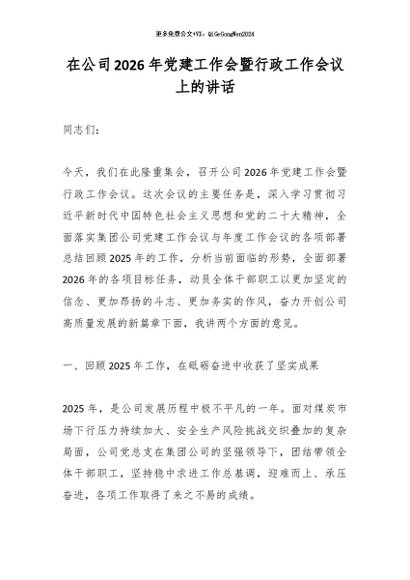 【七哥公文】2026年:在公司2026年党建工作会暨行政工作会议上的讲话_副本+更多免费公文+VX:QiGeGongWen2024