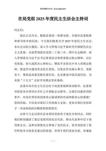 / 【七哥公文】2026年:在局党组2025年度民主生活会主持词+更多免费公文+VX:QiGeGongWen2024