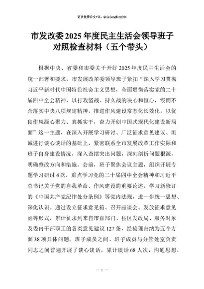 【七哥公文】2026年:市发改委2025年度民主生活会领导班子对照检查材料(五个带头)+更多免费公文+VX:QiGeGongWen2024