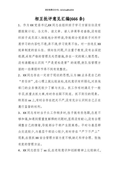 / 【七哥公文】2026年:相互批评意见汇编(666条)_副本+更多免费公文+VX:QiGeGongWen2024