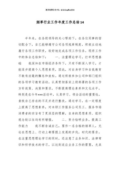 / 【七哥公文】2026年:烟草行业工作年度工作总结14_副本+更多免费公文+VX:QiGeGongWen2024