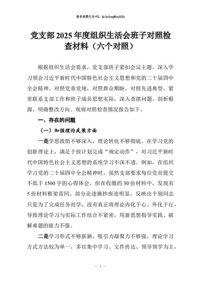 【七哥公文】2026年:党支部2025年度组织生活会班子对照检查材料(六个对照)+更多免费公文+VX:QiGeGongWen2024