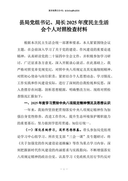 【七哥公文】2026年:县局党组书记、局长2025年度民主生活会个人对照检查材料+更多免费公文+VX:QiGeGongWen2024