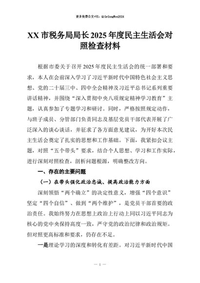 【七哥公文】2026年:XX市税务局局长2025年度民主生活会对照检查材料+更多免费公文+VX:QiGeGongWen2024