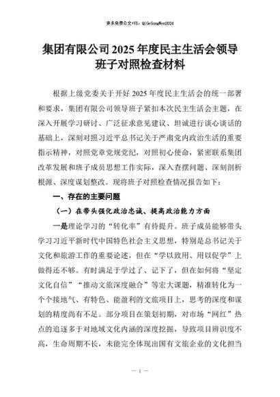 【七哥公文】2026年:集团有限公司2025年度民主生活会领导班子对照检查材料+更多免费公文+VX:QiGeGongWen2024
