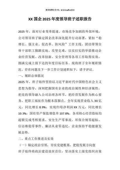 【七哥公文】2026年:XX国企2025年度领导班子述职报告+更多免费公文+VX:QiGeGongWen2024