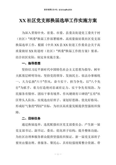 / 【七哥公文】2026年:XX社区党支部换届选举工作实施方案+更多免费公文+VX:QiGeGongWen2024