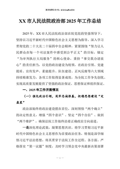 / 【七哥公文】2026年:XX市人民法院政治部2025年工作总结+更多免费公文+VX:QiGeGongWen2024