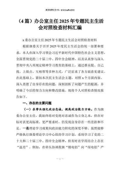 【七哥公文】2026年:(4篇)办公室主任2025年专题民主生活会对照检查材料汇编+更多免费公文+VX:QiGeGongWen2024