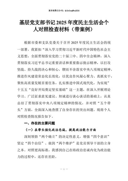 【七哥公文】2026年:基层党支部书记2025年度民主生活会个人对照检查材料(带案例)+更多免费公文+VX:QiGeGongWen2024