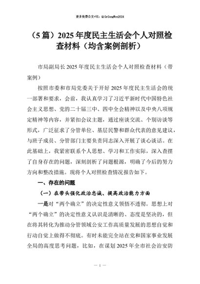 【七哥公文】2026年:(5篇)2025年度民主生活会个人对照检查材料(均含案例剖析)+更多免费公文+VX:QiGeGongWen2024