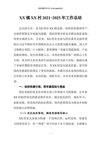 / 【七哥公文】2026年:XX镇XX村2021-2025年工作总结+更多免费公文+VX:QiGeGongWen2024