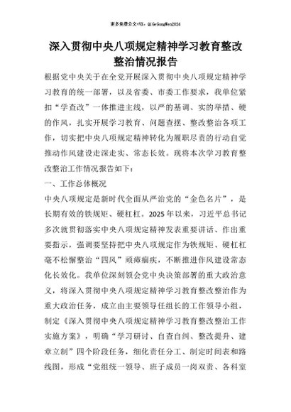 【七哥公文】2026年:深入贯彻中央八项规定精神学习教育整改整治情况报告+更多免费公文+VX:QiGeGongWen2024