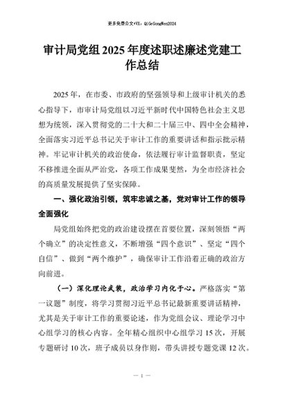 / 【七哥公文】2026年:审计局党组2025年度述职述廉述党建工作总结+更多免费公文+VX:QiGeGongWen2024