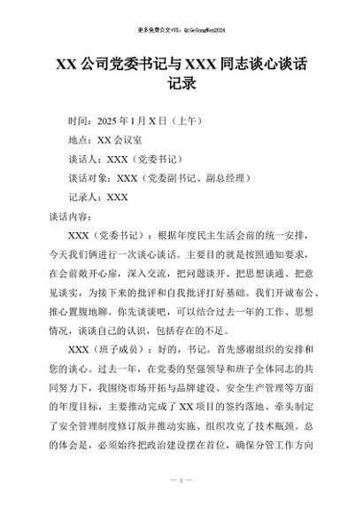 / 【七哥公文】2026年:XX公司党委书记与XXX同志谈心谈话记录+更多免费公文+VX:QiGeGongWen2024