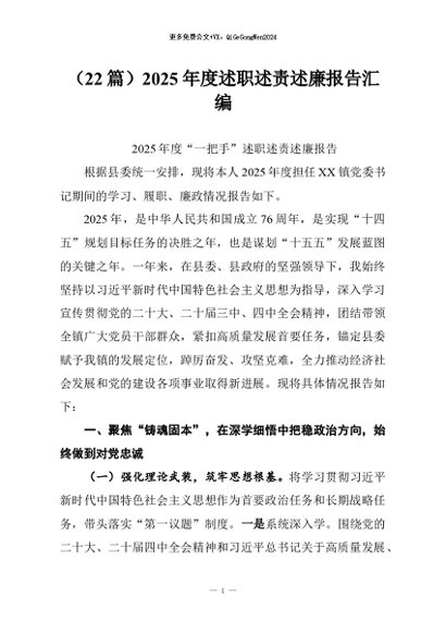 / 【七哥公文】2026年:(22篇)2025年度述职述责述廉报告汇编+更多免费公文+VX:QiGeGongWen2024