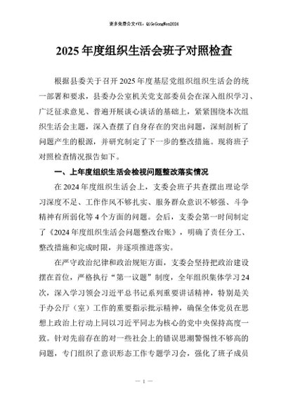 / 【七哥公文】2026年:2025年度组织生活会班子对照检查+更多免费公文+VX:QiGeGongWen2024