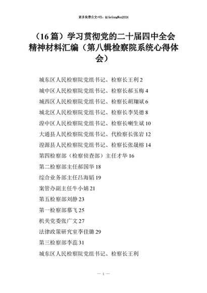 【七哥公文】2026年:(16篇)学习贯彻党的二十届四中全会精神材料汇编(第八辑检察院系统心得体会)+更多免费公文+VX:QiGeGongWen2024