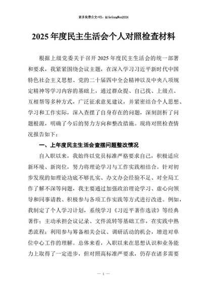 / 【七哥公文】2026年:2025年度民主生活会个人对照检查材料+更多免费公文+VX:QiGeGongWen2024