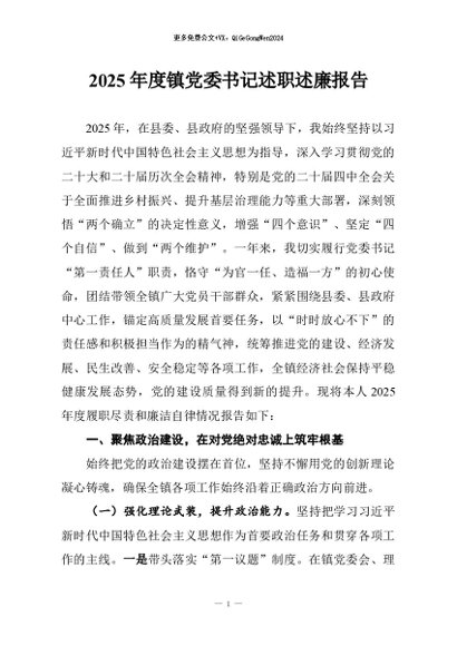 / 【七哥公文】2026年:2025年度镇党委书记述职述廉报告+更多免费公文+VX:QiGeGongWen2024