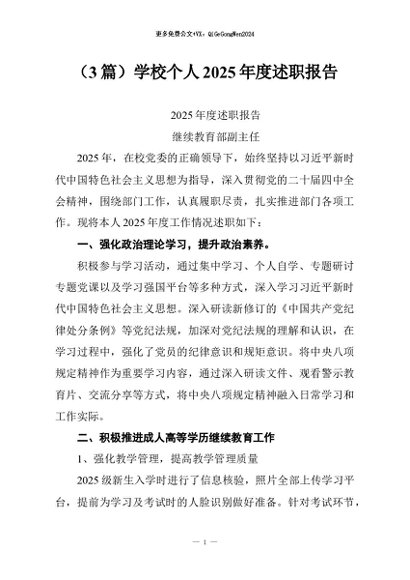 / 【七哥公文】2026年:(3篇)学校个人2025年度述职报告+更多免费公文+VX:QiGeGongWen2024