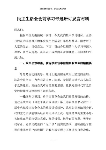 / 【七哥公文】2026年:民主生活会会前学习专题研讨发言材料+更多免费公文+VX:QiGeGongWen2024
