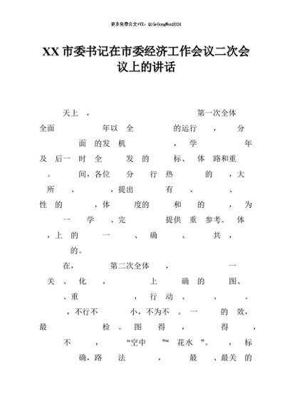 / 【七哥公文】2026年:XX市委书记在市委经济工作会议二次会议上的讲话+更多免费公文+VX:QiGeGongWen2024