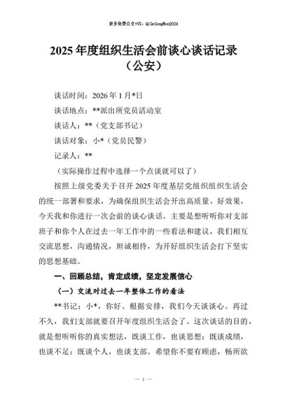 / 【七哥公文】2026年:2025年度组织生活会前谈心谈话记录(公安)+更多免费公文+VX:QiGeGongWen2024