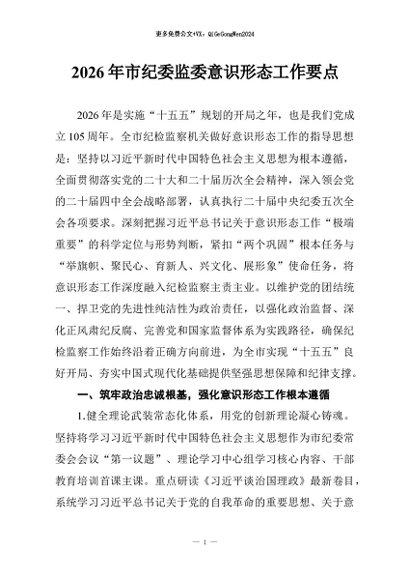 / 【七哥公文】2026年:2026年市纪委监委意识形态工作要点+更多免费公文+VX:QiGeGongWen2024
