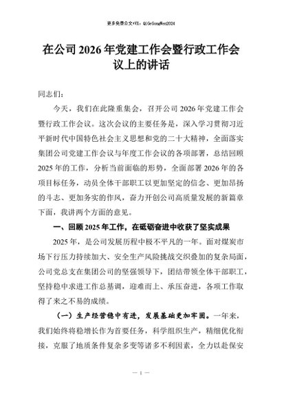 【七哥公文】2026年:在公司2026年党建工作会暨行政工作会议上的讲话+更多免费公文+VX:QiGeGongWen2024