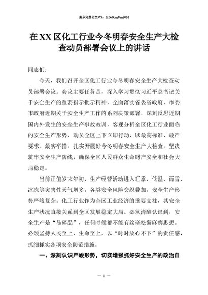 【七哥公文】2026年:在XX区化工行业今冬明春安全生产大检查动员部署会议上的讲话+更多免费公文+VX:QiGeGongWen2024