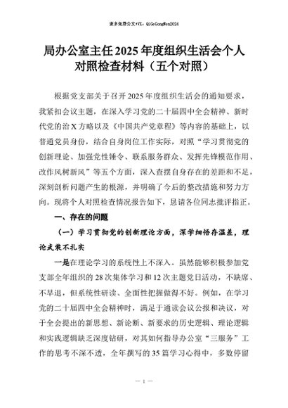 【七哥公文】2026年:局办公室主任2025年度组织生活会个人对照检查材料(五个对照)+更多免费公文+VX:QiGeGongWen2024