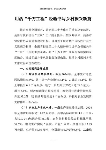 / 【七哥公文】2026年:用活“千万工程”经验书写乡村振兴新篇+更多免费公文+VX:QiGeGongWen2024