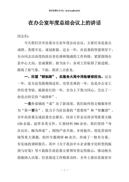 / 【七哥公文】2026年:在办公室年度总结会议上的讲话+更多免费公文+VX:QiGeGongWen2024