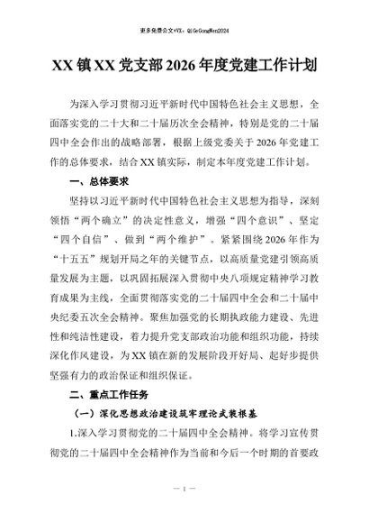 / 【七哥公文】2026年:XX镇XX党支部2026年度党建工作计划+更多免费公文+VX:QiGeGongWen2024